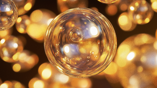 Metallische Blasen: Gold- oder Silberreflexionen, die Licht einfangen und spektakuläre Effekte erzeugen.
