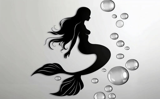Art'loloDiese Tapete meerjungfrau zeigt eine elegante Silhouette einer Meerjungfrau in Schwarz, umgeben von durchscheinenden Blasen, die einen Hauch von aq...