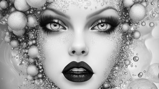 Art'loloVerwandeln Sie Ihren Raum mit dieser mysteriösen Tapete, die ein künstlerisches Gesicht umgeben von Blasen darstellt. Das faszinierende Schwarz-Wei...