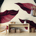 Tapete üppige Blätter | Burgunderrote und schwarze Blätter auf hellem Hintergrund