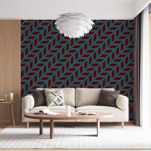 Studio SamaEntdecken Sie unsere geometrische Tapete mit einem gewebten Muster, das ein elegantes Burgunderrot mit einem tiefen Blau kombiniert. Ideal, um Ihre...