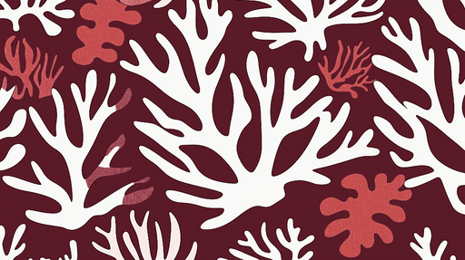 Vollständige Details anzeigenTapete Koralle | Muster von weißen und roten Korallen auf burgunderfarbenem Hintergrund