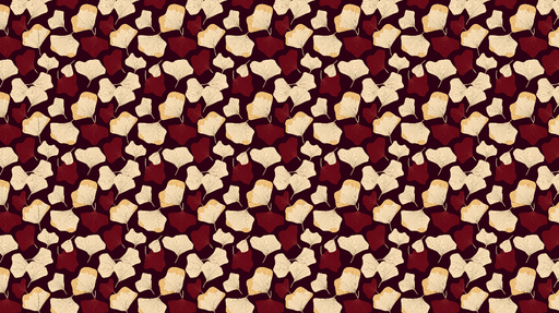 WonderMuralUnsere Tapete zeigt ein elegantes Muster von Ginkgoblättern in warmen Farbtönen von Creme, Rot und Karamell auf einem reichen burgunderfarbenen Hin...