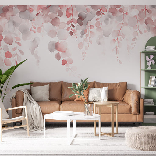 WonderMuralEntdecken Sie unsere Tapete mit zarten Schattierungen von Rosa und Grau, wo Aquarellblätter anmutig fallen. Das leichte und luftige Design schafft ...