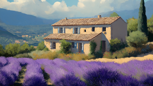 Vollständige Details anzeigenTapete lavendel | Provenzalisches Haus inmitten von Lavendelfeldern