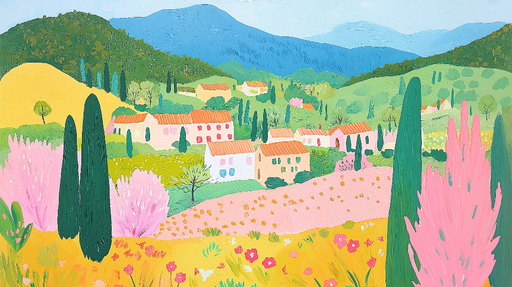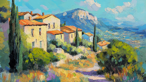 Vollständige Details anzeigenTapete provencal-landscape | Bunte mediterrane Szene