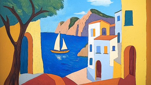 Vollständige Details anzeigenTapete Mediterrane Landschaft | Farbenfrohe Aussicht auf Natur und Architektur