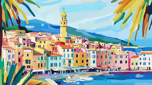 Vollständige Details anzeigenTapete Mediterranes Dorf | Farbenfrohe und warme Landschaft