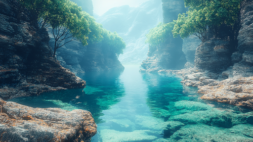 Art'loloEntdecken Sie unsere Tapete Landschaft mit einer atemberaubenden Schlucht und einem bezaubernden türkisfarbenen Fluss. Dieses fesselnde Bild bringt...