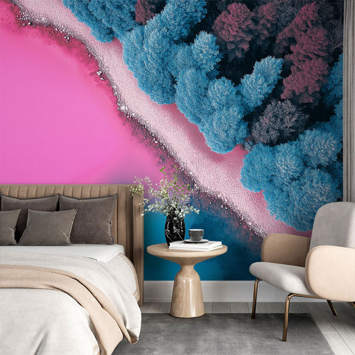 WonderMuralEntdecken Sie unsere Tapete, die eine traumhafte Landschaft einfängt, in der die Natur mit lebendigen Farben geschmückt ist. Der Fluss mit rosa und...