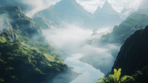 Vollständige Details anzeigenTapete maritimes Landschaft | Nebelige Flüsse und üppige Vegetation