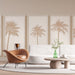 Der helle Hintergrund hebt die Silhouetten der Palmen hervor und verleiht Ihrem Interieur eine warme Note. Dieses minimalistische Design passt problemlos zu einer Vielzahl von dekorativen Elementen, ob im zeitgenössischen oder ländlichen Stil.