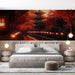 Diese erhabene Tapete erfasst die friedliche Schönheit einer Herbstlandschaft, in der Bäume mit feurig roten Blättern einen ruhigen Bach säumen. Die beleuchteten Laternen schaffen eine warme Atmosphäre, die zur Gelassenheit und Besinnung einlädt.