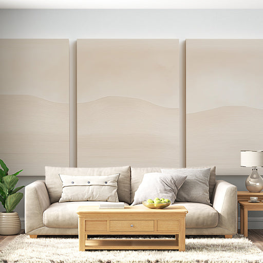 WonderMuralDiese Tapete zeigt eine minimalistische Landschaft mit sanften, beruhigenden Wellen, die zarte Dünen unter weichem Licht hervorrufen. Die neutralen...