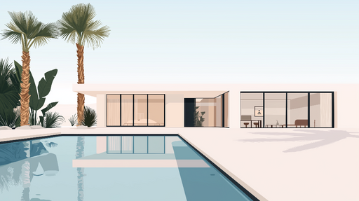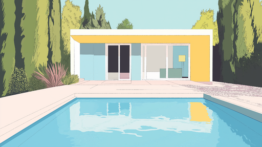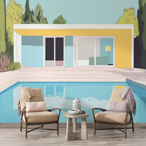 WonderMuralUnsere Tapete zeigt eine wunderschöne Illustration eines modernen Hauses am Pool und fängt die Essenz zeitgenössischer Architekturentwürfe ein. Die...