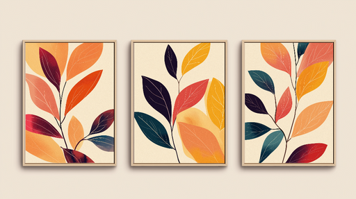 WonderMuralEntdecken Sie unsere einzigartige Tapete, die ein Muster aus stilisierten Blättern in lebendigen Farben zeigt, von warmen Orangetönen bis zu tiefen...