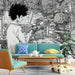 Die klaren Linien und der monochrome Stil der Illustration bringen eine moderne Ästhetik, die sich perfekt in zeitgenössische oder industrielle Innenräume integriert. Mit einer dynamischen Komposition kann diese Tapete zum Mittelpunkt eines Raumes werden und Gespräche sowie die Vorstellungskraft anregen.