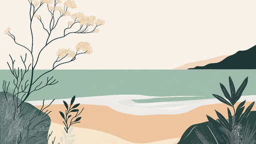 Vollständige Details anzeigenTapete am meer | Minimalistisches Design mit Pflanzen und Ozean