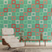 Diese geometrische Tapete zeigt ein lebhaftes Muster aus mehrfarbigen Quadraten und ist perfekt geeignet, um jeden Innenraum zu beleben. Die Farbtöne von Minzgrün, Pink und Rot kombinieren sich zu einem modernen und fesselnden Design.