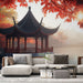 Fototapete orientalisches Landschaft | Pavillon am Wasser unter Herbstblättern