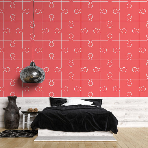 Studio SamaFügen Sie Ihrem Interieur mit unserer Tapete Puzzle mit einem rosa geometrischen Muster einen verspielten und modernen Touch hinzu. Dieses einzigar...
