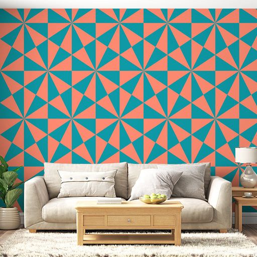 Vollständige Details anzeigenTapete geometrisch | Rosa und blaues dreieckiges Muster