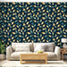 Diese Fototapete zeigt ein üppiges Muster aus goldenen und blauen Blättern, die anmutig auf einem schwarzen Hintergrund miteinander verschlungen sind. Die Kombination dieser kräftigen Farben verleiht Ihrem Interieur einen Hauch von Luxus und ruft gleichzeitig eine beruhigende und raffinierte botanische Atmosphäre hervor.