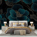 Diese Wandtapete besticht durch ihr raffiniertes Blumendesign, das prächtige türkisfarbene Blumen hervorhebt, die mit goldenen Linien auf einem tiefen schwarzen Hintergrund illustriert sind. Die zarten Details der Blumen vermitteln ein Gefühl von Luxus und Raffinesse, das perfekt ist, um jedem Raum eine Note von Eleganz zu verleihen.