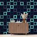 Fügen Sie Ihrem Interieur einen zeitgenössischen Touch hinzu mit unserer geometrischen Tapete, die türkise Quadrate auf schwarzem Hintergrund zeigt. Dieses moderne und elegante Design eignet sich perfekt, um einen kühnen Akzent in jedem Raum zu schaffen, sei es im Wohnzimmer, Büro oder Schlafzimmer.