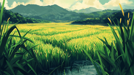 Vollständige Details anzeigenTapete grünes Feld | üppige Reisfelder unter einem sonnigen Himmel