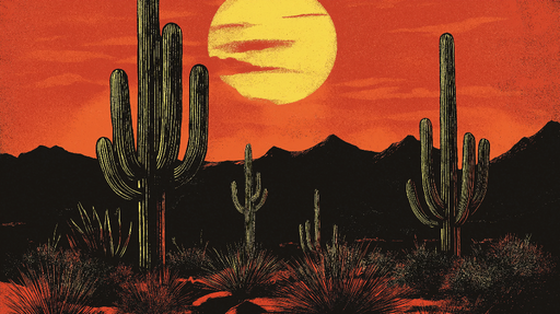 Vollständige Details anzeigenTapete wüste | Kaktus in Silhouette unter einer lebhaften untergehenden Sonne