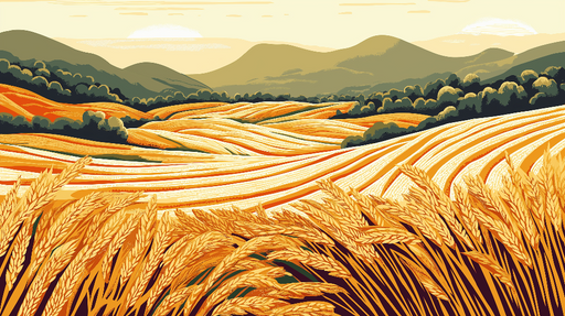 WonderMuralDiese Tapete ruft eine prächtige Weizenlandschaft hervor, die im weichen Licht eines Sonnenuntergangs gebadet wird. Die Felder in goldenen und oran...