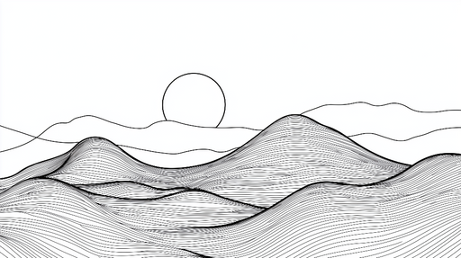 WonderMuralDiese Wandtapete verfügt über ein minimalistisches Design, das wellenförmige Linien hervorhebt, die Landschaften und eine stilisierte Sonne darstel...