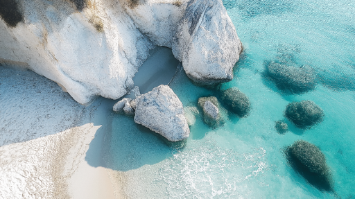 Vollständige Details anzeigenTapete Strand | Weiße Felsen und türkisfarbenes Wasser unter der Sonne