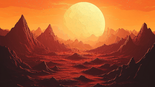WonderMuralDiese Tapete zeigt eine spektakuläre bergige Landschaft, die in Schattierungen von Orange und Rot getaucht ist und eine faszinierende außerirdische...