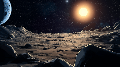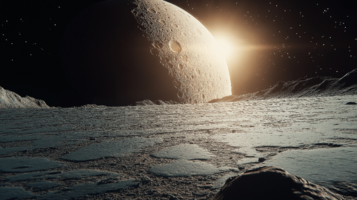 Vollständige Details anzeigenTapete universum | Mondlandschaft mit heller Sonne