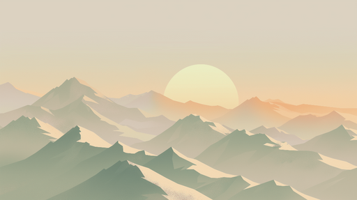 WonderMuralUnsere Tapete zeigt ein wunderschönes Panorama von stilisierten Bergen unter einer zarten aufgehenden Sonne. Die sanften Grüntöne und Beigetöne sch...