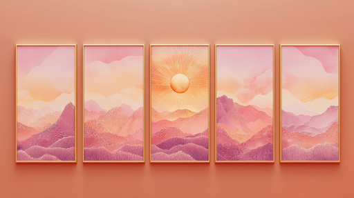 Das Wohnzimmer entfaltet sich besonders mit einem solaren Panorama und schafft eine warme und einladende Atmosphäre. Die Küche wird lebendiger mit leuchtenden Mustern, die die Morgenenergie stimulieren. Das Esszimmer gewinnt an Geselligkeit dank goldener Farbtöne, die die Atmosphäre erwärmen. Selbst ein schlecht beleuchteter Raum verwandelt sich mit diesen brillanten Designs in einen strahlenden Raum.