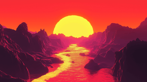 Vollständige Details anzeigenTapete fantastische Landschaft | Glitzernder Fluss unter einer brennenden Sonne