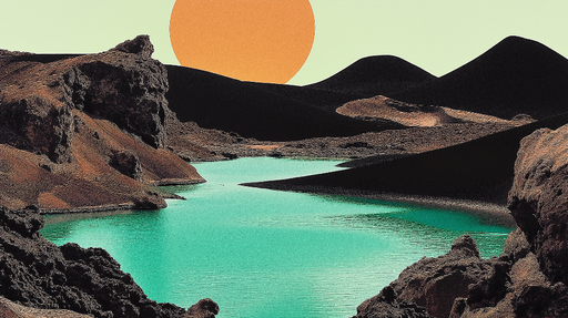 Vollständige Details anzeigenTapete surreale Landschaft | Türkisfarbener Fluss und orangefarbene Sonne