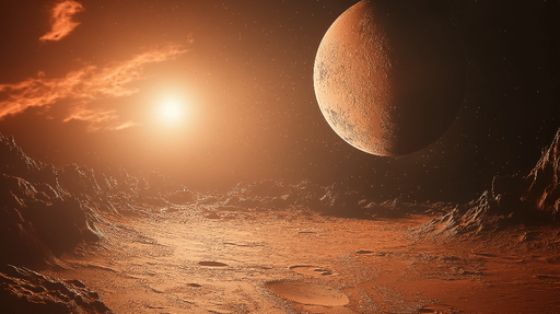 Vollständige Details anzeigenTapete universum | Marslandschaft erleuchtet von einer strahlenden Sonne