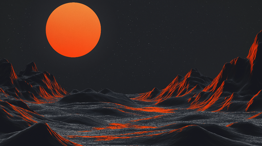 WonderMuralDiese faszinierende Tapete zeigt eine außerirdische Landschaft mit lebendigen Farben, die dunkle Berge zeigt, die von einer glühenden Sonne beleuch...