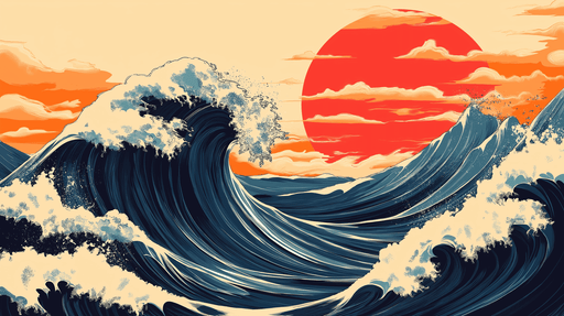 WonderMuralDiese faszinierende Tapete mit einem erhabenen Muster von Japanischen Wellen betont die Kraft und Fluidität des Meeres, während eine leuchtende rot...