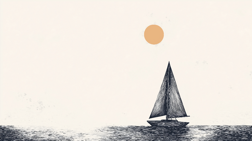 WonderMuralDiese faszinierende Tapete zeigt ein stilisiertes Segelboot, das friedlich auf ruhigen Gewässern unter einer goldenen Sonne segelt. Die klaren Lini...