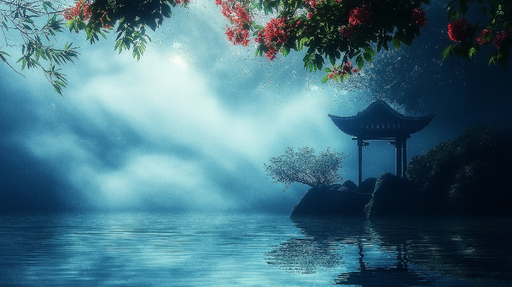 Vollständige Details anzeigenTapete zen-garten | Ruhige Landschaft mit einem traditionellen Pavillon