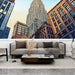 Unsere Tapete entführt Sie mitten ins Herz von New York und fängt die Essenz der berühmten Wolkenkratzer mit einem dynamischen und immersiven Blick ein. Die Illustration zeigt eine zeitgemäße Mischung aus moderner und klassischer Architektur und schafft so eine lebendige städtische Atmosphäre, die zum Träumen anregt. Die warmen Farben und klaren Linien verleihen Tiefe und Textur, während der friedliche Himmel im Hintergrund einen beruhigenden Kontrast zur intensiven Gebäudedekoration bietet. Es ist ein Wandgemälde, das jedem Raum einen Hauch von Raffinesse und Energie verleiht. Perfekt für moderne oder industrielle Innenräume, passt diese Tapete wunderbar zu zeitgenössischen Möbeln und dekorativen Elementen. Kombinieren Sie sie mit neutralen Farben und Metallakzenten für eine noch eindrucksvollere Wirkung. Tipp von WonderMural.com: Verwenden Sie diese Tapete ruhig an einer einzelnen Wand, um eine maximale Wirkung zu erzielen, während Sie die anderen Wände in komplementären Tönen für einen ausgewogenen Look halten.