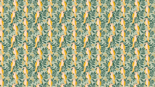 Vollständige Details anzeigenTapete perroquet | Ein buntes Muster von gelben Papageien zwischen tropischen Blättern