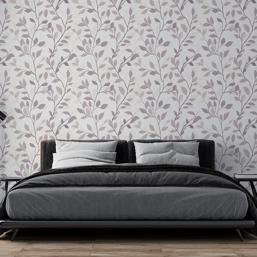 WonderMuralDiese Tapete zeigt ein bezauberndes Muster von lila Blumen, die elegant auf einem hellen Hintergrund verstreut sind und eine weiche und beruhigende...