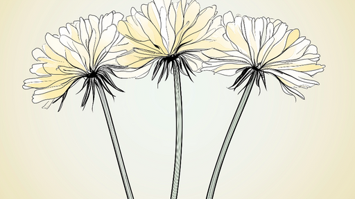 Vollständige Details anzeigenTapete zarte Blumen | Drei stilisierte Blumen mit feinen Umrissen und sanften Schattierungen