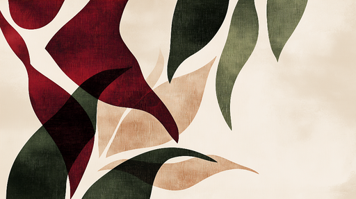 WonderMuralDiese Tapete zeigt eine faszinierende abstrakte Komposition mit stilisierten Blattmustern in reichen Rottönen, Grüntönen und Beigetönen. Der neutra...
